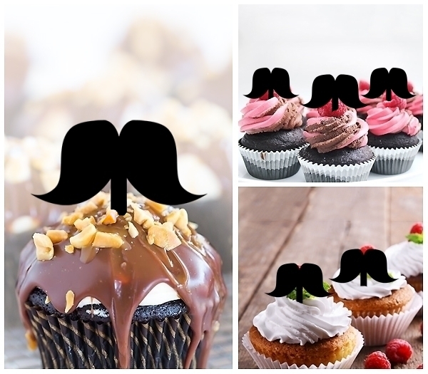 Mustache Cupcake 10 Toppers Laser Cut Acrylic for Wedding Birthday Baby Shower Bachelorette Engagement Party Decor