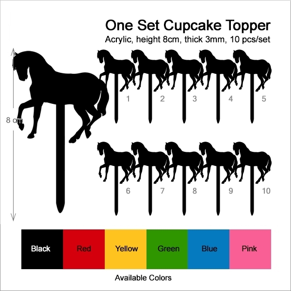 Horse Cupcake 10 Toppers Laser Cut Acrylic for Wedding Birthday Baby Shower Bachelorette Engagement Party Decor