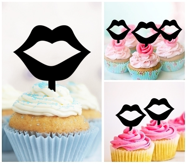 Lips Cupcake 10 Toppers Laser Cut Acrylic for Wedding Birthday Baby Shower Bachelorette Engagement Party Decor