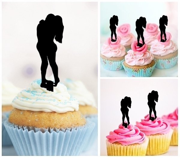 Lovers Couple Kiss Cupcake 10 Toppers Laser Cut Acrylic for Wedding Birthday Baby Shower Bachelorette Engagement Party Decor