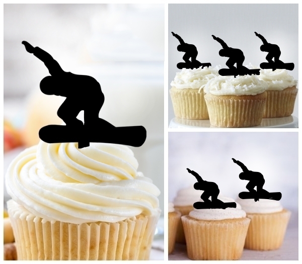 Snowboard Snowboarding Cupcake 10 Toppers Laser Cut Acrylic for Wedding Birthday Baby Shower Bachelorette Engagement Party Decor