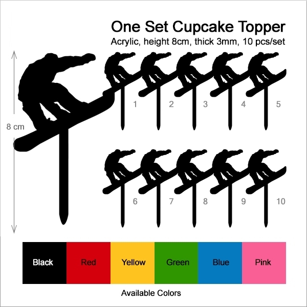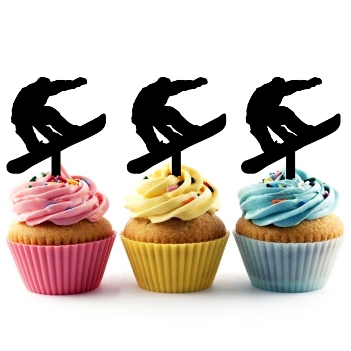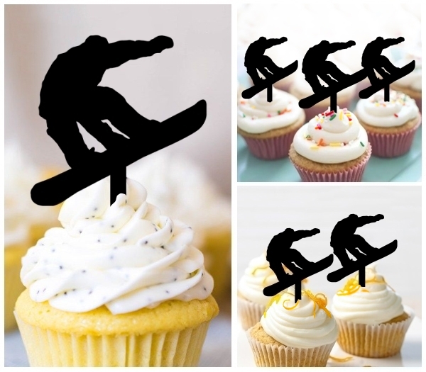 Snowboard Snowboarding Jumps Cupcake 10 Toppers Laser Cut Acrylic for Wedding Birthday Baby Shower Bachelorette Engagement Party Decor