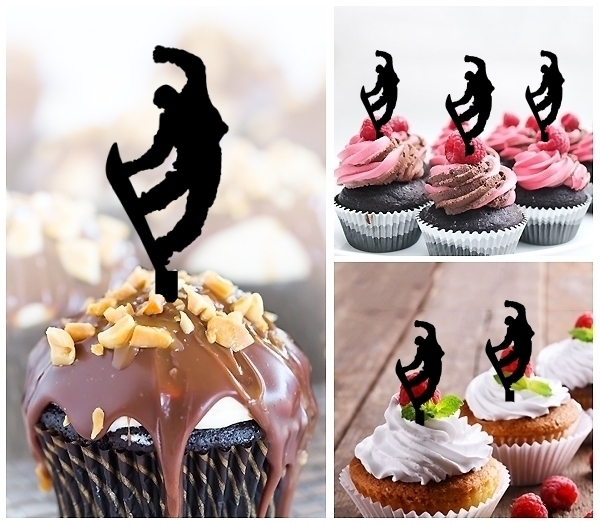 Snowboard Snowboarding Jumps Cupcake 10 Toppers Laser Cut Acrylic for Wedding Birthday Baby Shower Bachelorette Engagement Party Decor