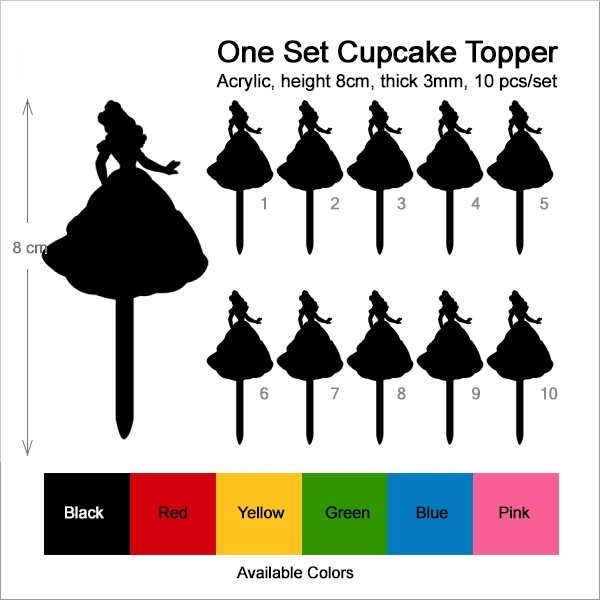 Princess Cupcake 10 Toppers Laser Cut Acrylic for Wedding Birthday Baby Shower Bachelorette Engagement Party Decor