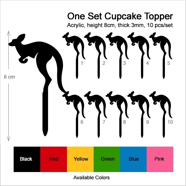 Kangaroo Cupcake 10 Toppers Laser Cut Acrylic for Wedding Birthday Baby Shower Bachelorette Engagement Party Decor