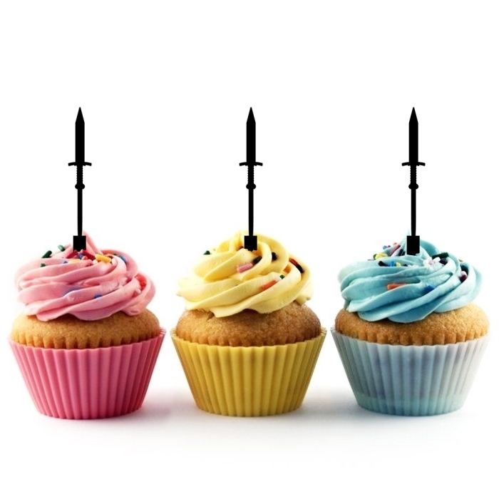Sword Cupcake 10 Toppers Laser Cut Acrylic for Wedding Birthday Baby Shower Bachelorette Engagement Party Decor