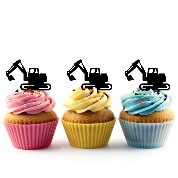 Backhoe Construction Cupcake 10 Toppers Laser Cut Acrylic for Wedding Birthday Baby Shower Bachelorette Engagement Party Decor