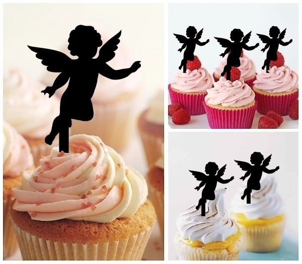 Cupid Angel of Love Cupcake 10 Toppers Laser Cut Acrylic for Wedding Birthday Baby Shower Bachelorette Engagement Party Decor