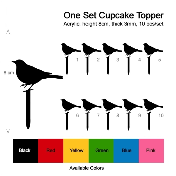 Little Bird Cupcake 10 Toppers Laser Cut Acrylic for Wedding Birthday Baby Shower Bachelorette Engagement Party Decor