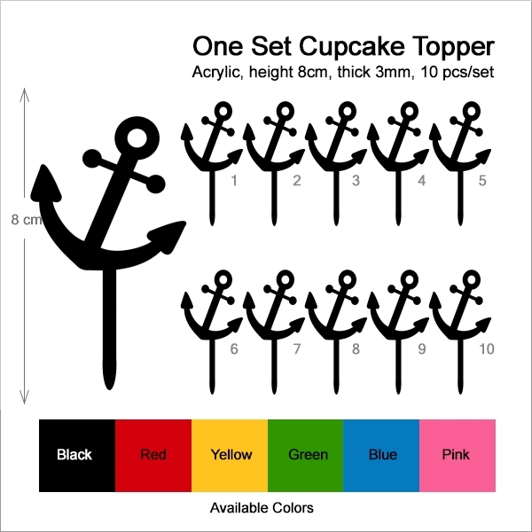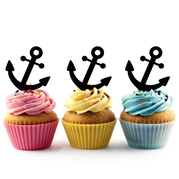 Navy Anchor Nautical Cupcake 10 Toppers Laser Cut Acrylic for Wedding Birthday Baby Shower Bachelorette Engagement Party Decor
