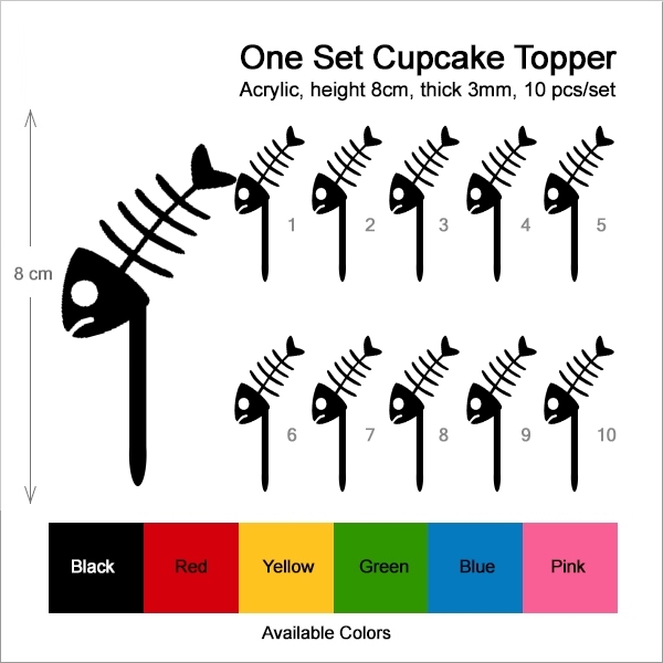 Fish Bone Cupcake 10 Toppers Laser Cut Acrylic for Wedding Birthday Baby Shower Bachelorette Engagement Party Decor