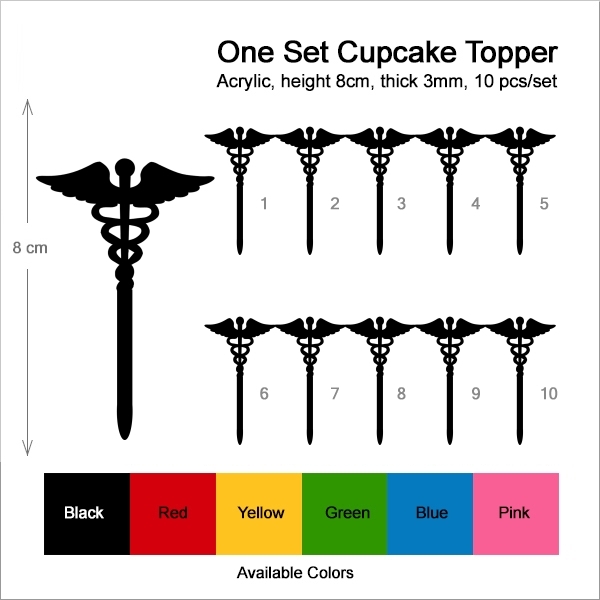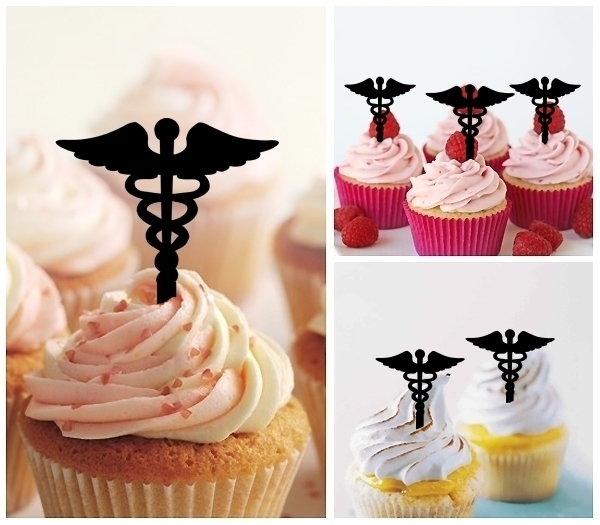Caduceus Medical Symbol Cupcake 10 Toppers Laser Cut Acrylic for Wedding Birthday Baby Shower Bachelorette Engagement Party Decor