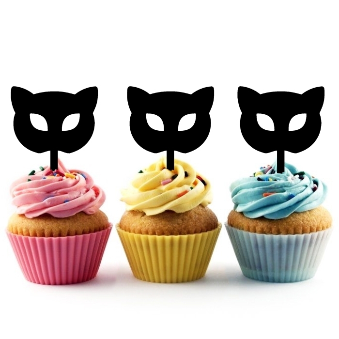 Fancy Venetian Cat Mask Cupcake 10 Toppers Laser Cut Acrylic for Wedding Birthday Baby Shower Bachelorette Engagement Party Decor
