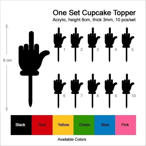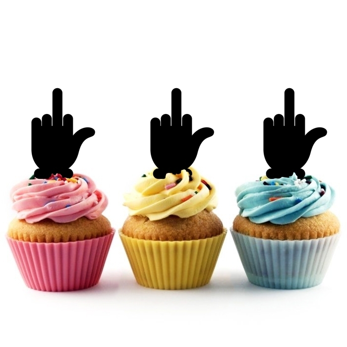 Funny Middle Finger Cupcake 10 Toppers Laser Cut Acrylic for Wedding Birthday Baby Shower Bachelorette Engagement Party Decor