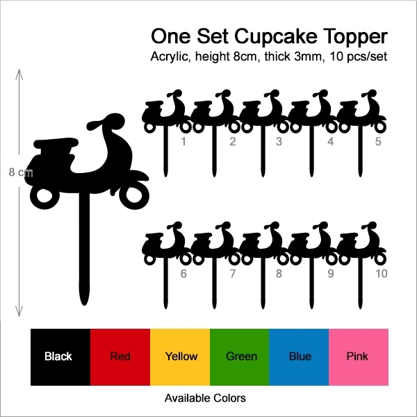 Scooter Motorcycle Cupcake 10 Toppers Laser Cut Acrylic for Wedding Birthday Baby Shower Bachelorette Engagement Party Decor