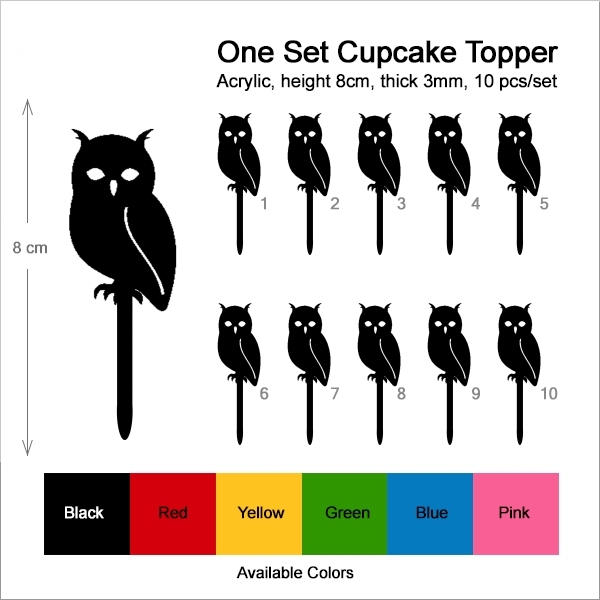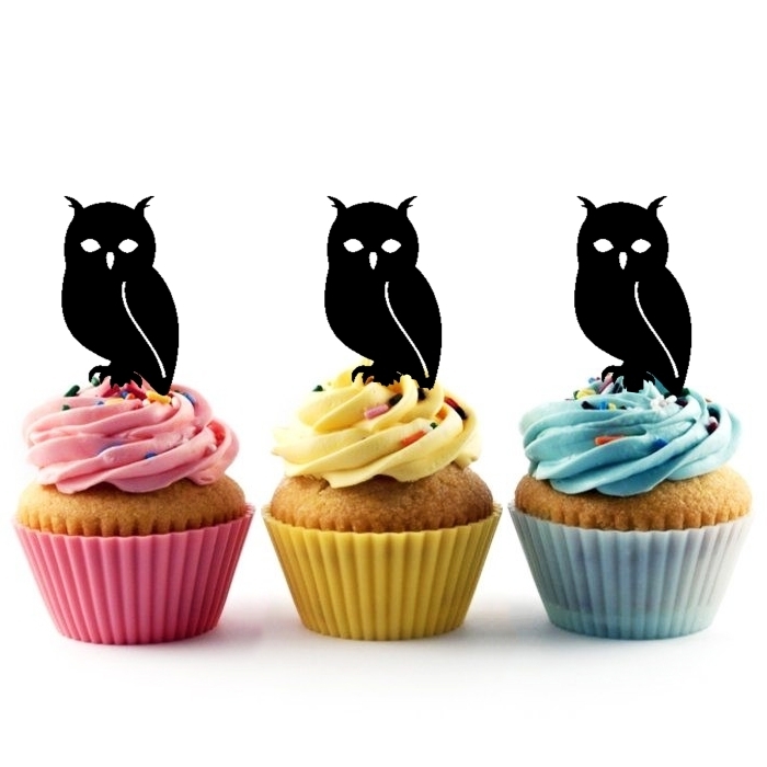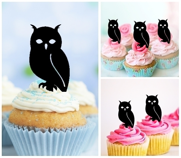 Night Owl Cupcake 10 Toppers Laser Cut Acrylic for Wedding Birthday Baby Shower Bachelorette Engagement Party Decor