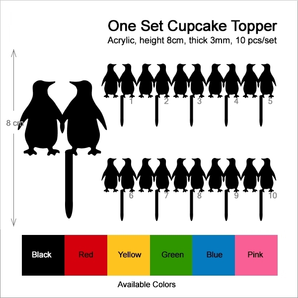 Valentines Couple Penguin Cupcake 10 Toppers Laser Cut Acrylic for Wedding Birthday Baby Shower Bachelorette Engagement Party Decor
