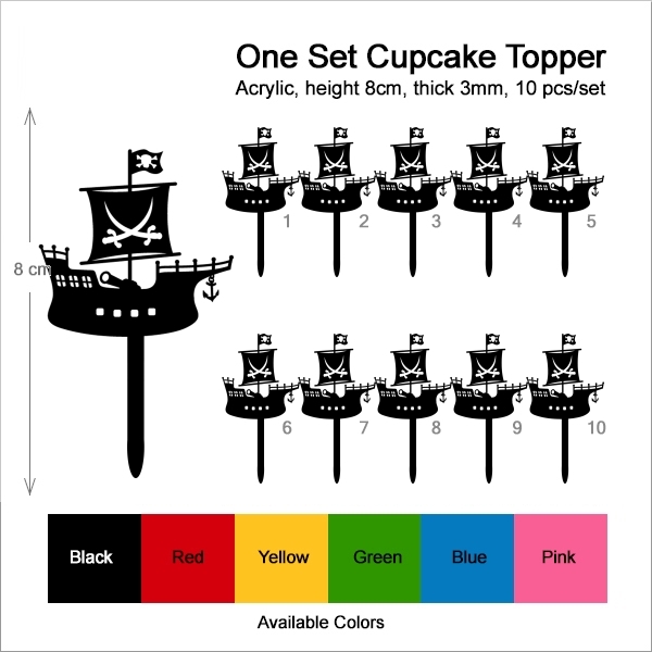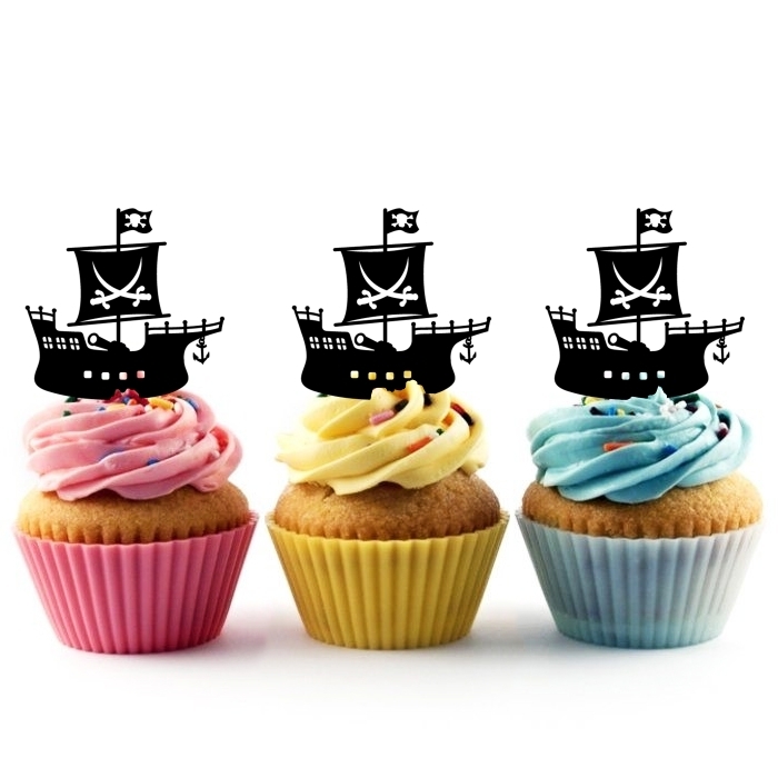 Pirate Ship Cupcake 10 Toppers Laser Cut Acrylic for Wedding Birthday Baby Shower Bachelorette Engagement Party Decor