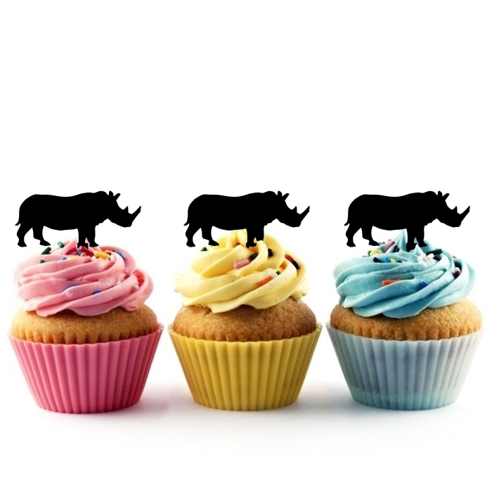 Rhino Rhinoceros Cupcake 10 Toppers Laser Cut Acrylic for Wedding Birthday Baby Shower Bachelorette Engagement Party Decor