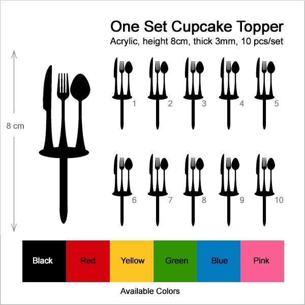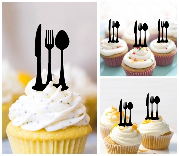 Spoon Fork Knife Cupcake 10 Toppers Laser Cut Acrylic for Wedding Birthday Baby Shower Bachelorette Engagement Party Decor