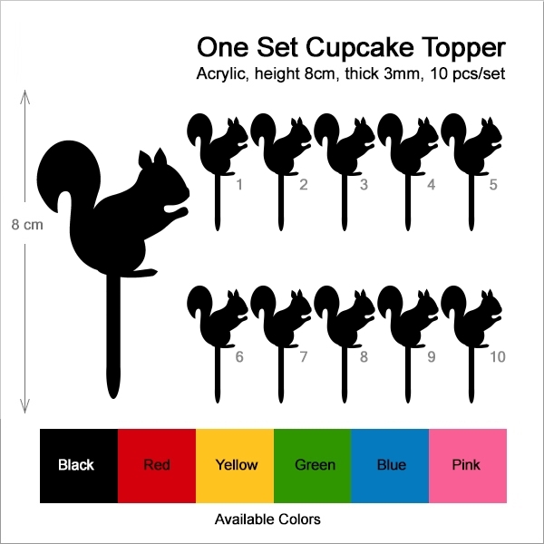 Squirrel Cupcake 10 Toppers Laser Cut Acrylic for Wedding Birthday Baby Shower Bachelorette Engagement Party Decor