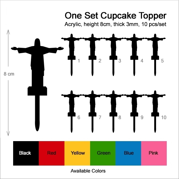 Christ the Redeemer Rio de Janeiro Cupcake 10 Toppers Laser Cut Acrylic for Wedding Birthday Baby Shower Bachelorette Engagement Party Decor