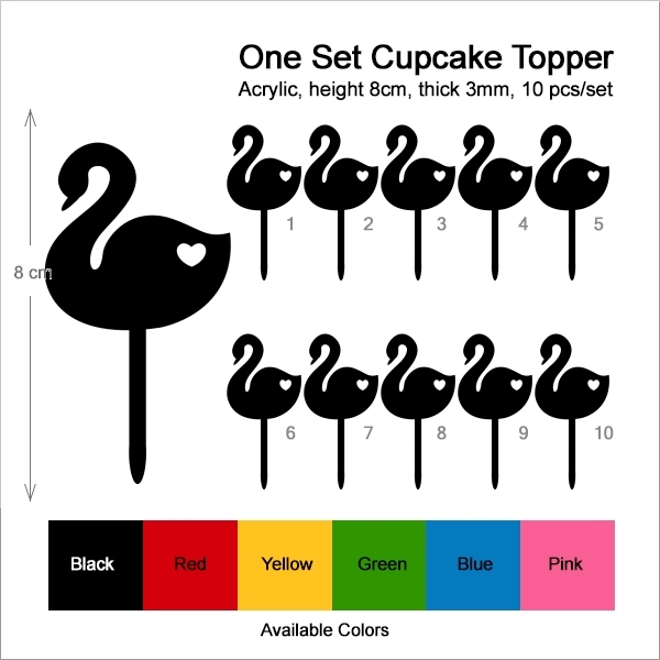 Swan Love Heart Cupcake 10 Toppers Laser Cut Acrylic for Wedding Birthday Baby Shower Bachelorette Engagement Party Decor