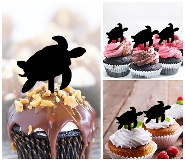 Ocean Sea Turtle Cupcake 10 Toppers Laser Cut Acrylic for Wedding Birthday Baby Shower Bachelorette Engagement Party Decor