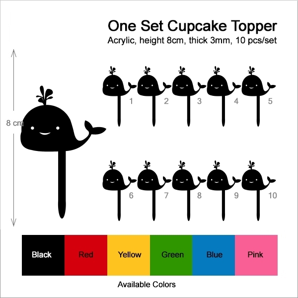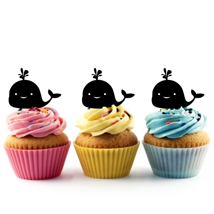 Smile Whale Cupcake 10 Toppers Laser Cut Acrylic for Wedding Birthday Baby Shower Bachelorette Engagement Party Decor