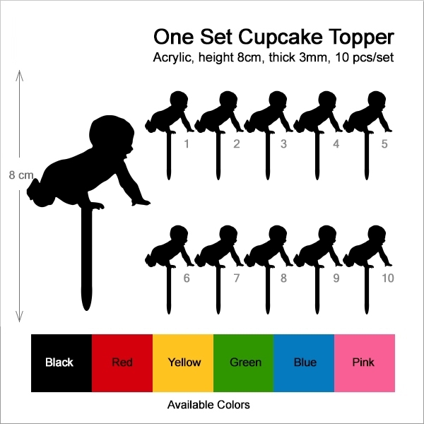Baby Crawling Cupcake 10 Toppers Laser Cut Acrylic for Wedding Birthday Baby Shower Bachelorette Engagement Party Decor