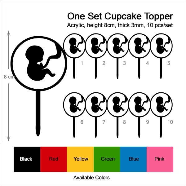 Baby Embryo Pregnant Love and Baby Cupcake 10 Toppers Laser Cut Acrylic for Wedding Birthday Baby Shower Bachelorette Engagement Party Decor