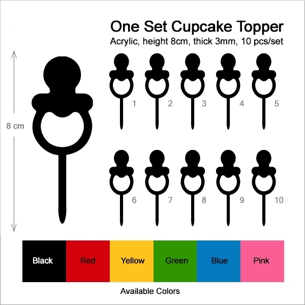 Baby Pacifier Cupcake 10 Toppers Laser Cut Acrylic for Wedding Birthday Baby Shower Bachelorette Engagement Party Decor