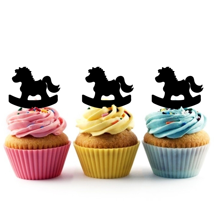 Baby Toy Rocking Horse Cupcake 10 Toppers Laser Cut Acrylic for Wedding Birthday Baby Shower Bachelorette Engagement Party Decor