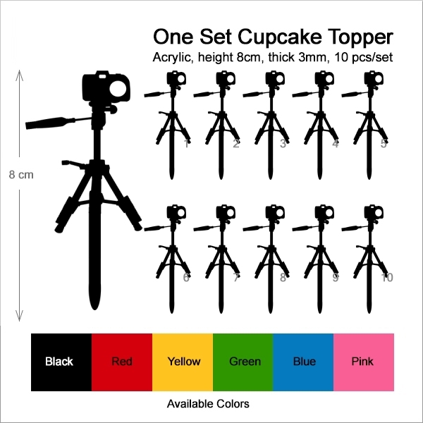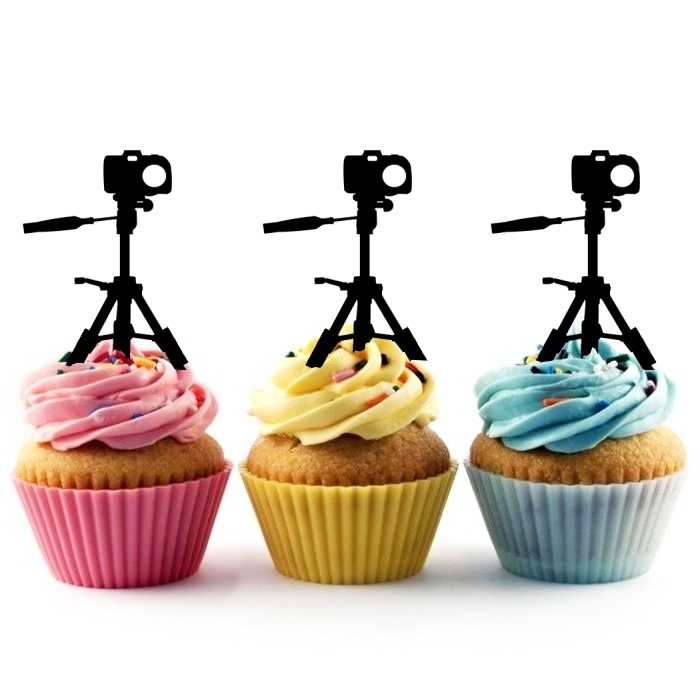 Camera Cupcake 10 Toppers Laser Cut Acrylic for Wedding Birthday Baby Shower Bachelorette Engagement Party Decor