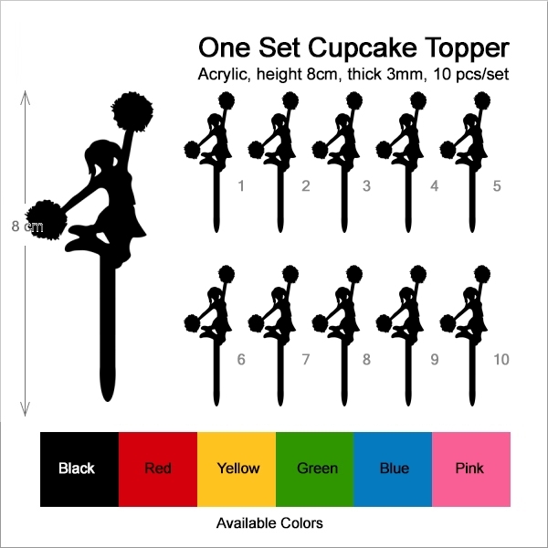Cheerleader Cheers Cupcake 10 Toppers Laser Cut Acrylic for Wedding Birthday Baby Shower Bachelorette Engagement Party Decor