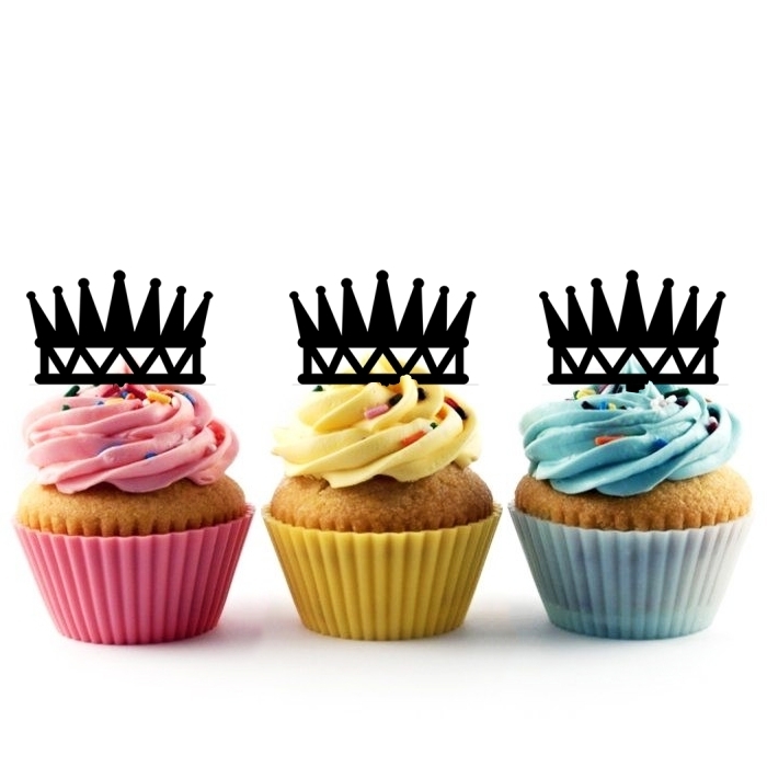 TA0457 Crown Laser Cut Cupcake Acrylic Toppers for Party Wedding Birthday Decorations