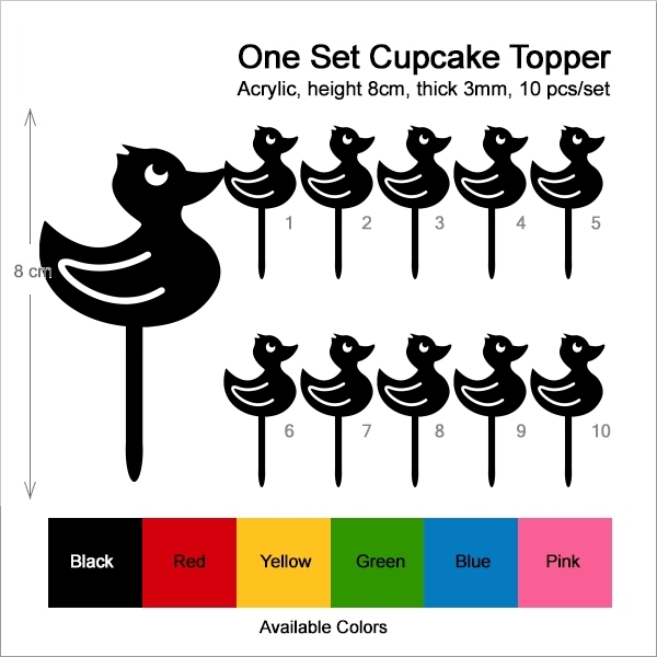 Duck Cupcake 10 Toppers Laser Cut Acrylic for Wedding Birthday Baby Shower Bachelorette Engagement Party Decor