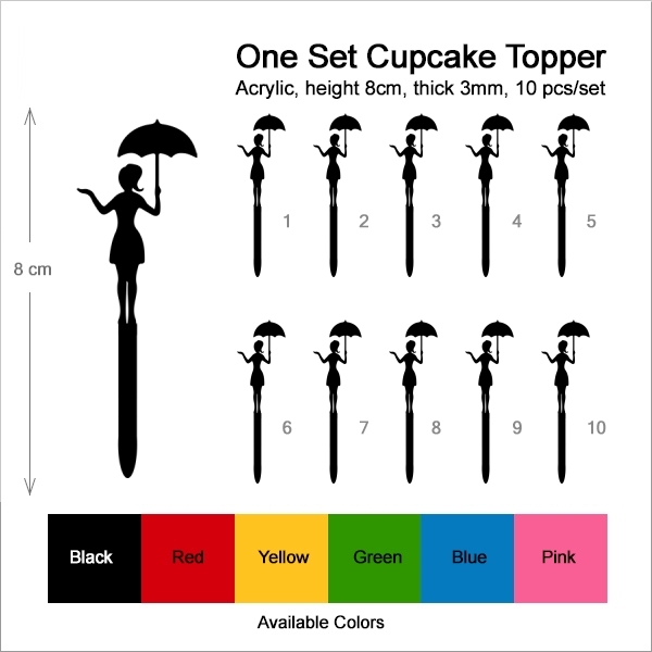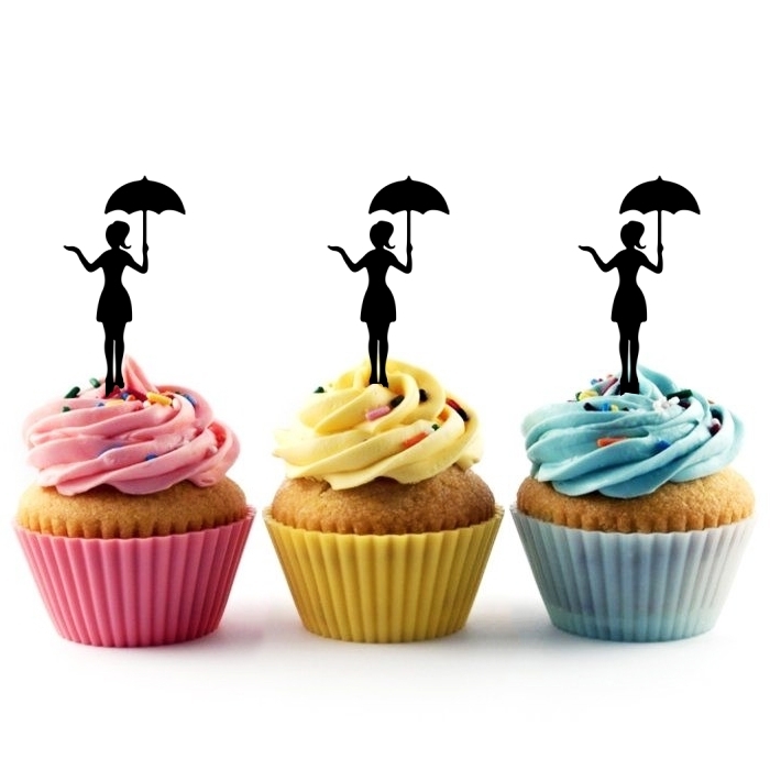 Girl Umbrella Cupcake 10 Toppers Laser Cut Acrylic for Wedding Birthday Baby Shower Bachelorette Engagement Party Decor