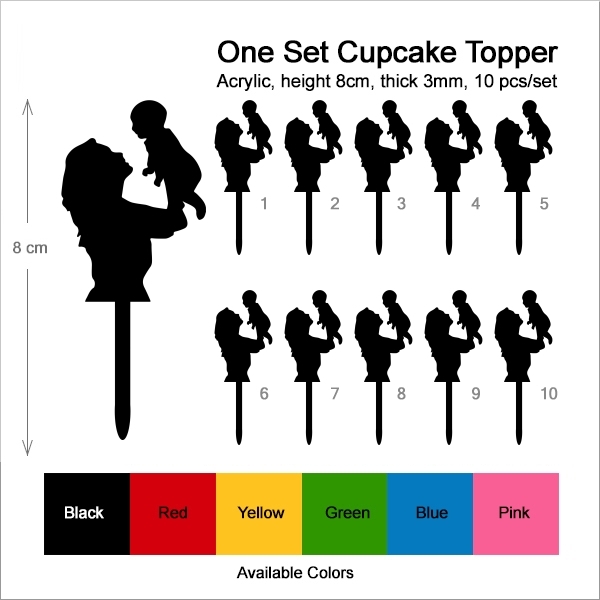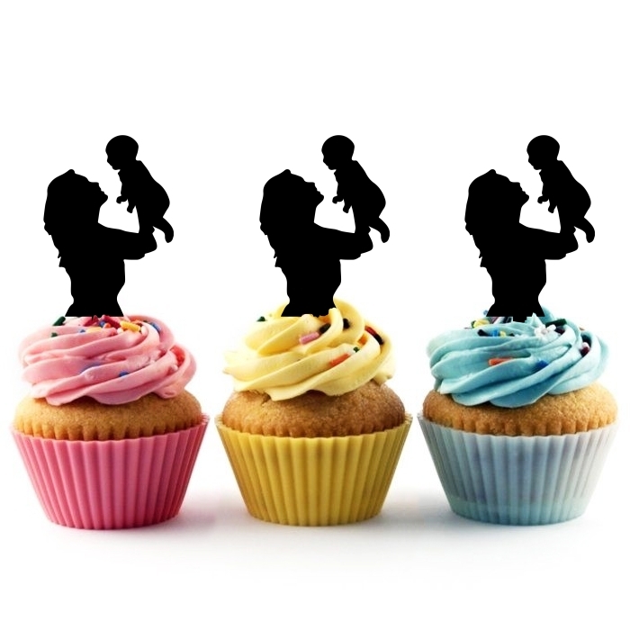 Mother and Baby Cupcake 10 Toppers Laser Cut Acrylic for Wedding Birthday Baby Shower Bachelorette Engagement Party Decor