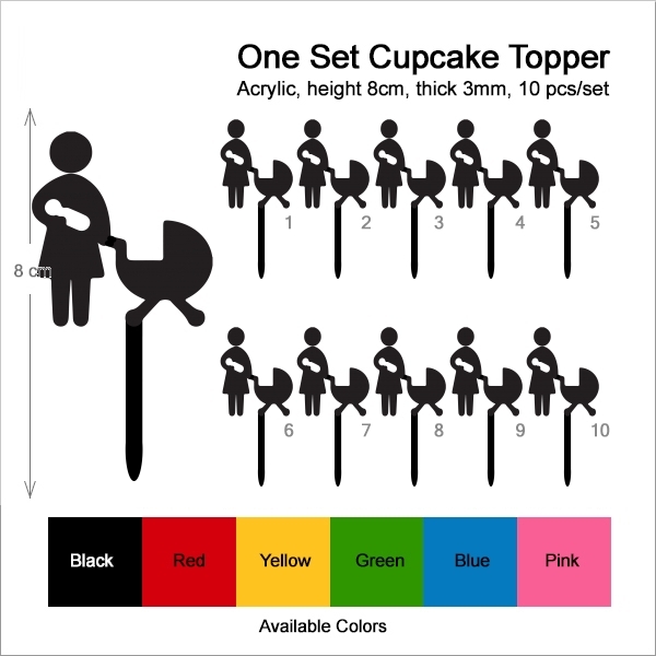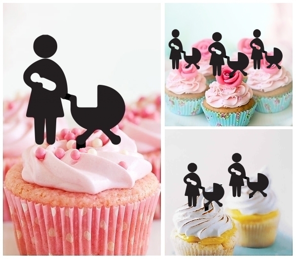 Mother and Baby Cupcake 10 Toppers Laser Cut Acrylic for Wedding Birthday Baby Shower Bachelorette Engagement Party Decor