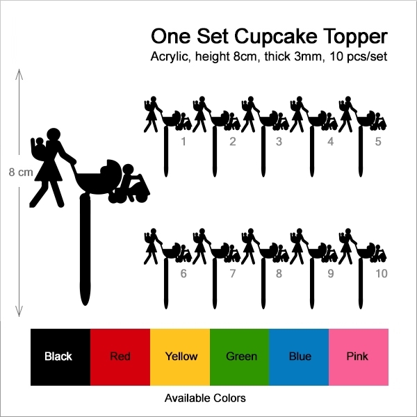 Mother Walking With Three Babies Cupcake 10 Toppers Laser Cut Acrylic for Wedding Birthday Baby Shower Bachelorette Engagement Party Decor