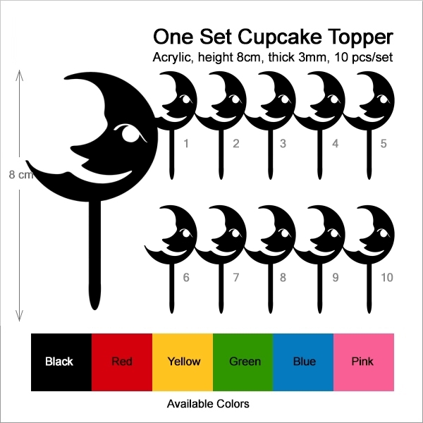 Laughing Moon Cupcake 10 Toppers Laser Cut Acrylic for Wedding Birthday Baby Shower Bachelorette Engagement Party Decor