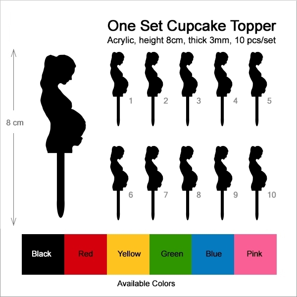 Pregnant Cupcake 10 Toppers Laser Cut Acrylic for Wedding Birthday Baby Shower Bachelorette Engagement Party Decor