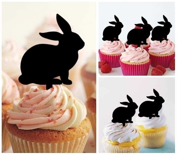 Rabbit Cupcake 10 Toppers Laser Cut Acrylic for Wedding Birthday Baby Shower Bachelorette Engagement Party Decor
