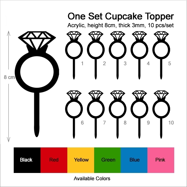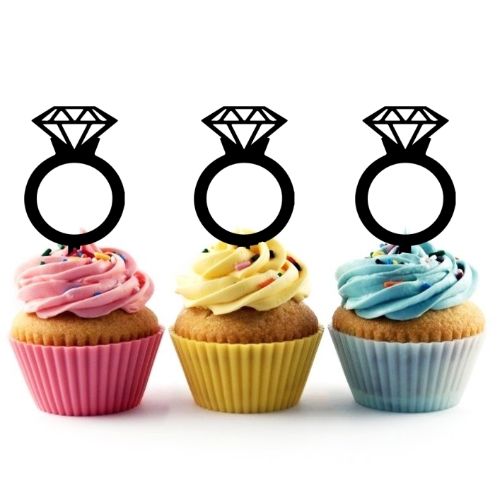 Diamond Wedding Ring Cupcake 10 Toppers Laser Cut Acrylic for Wedding Birthday Baby Shower Bachelorette Engagement Party Decor