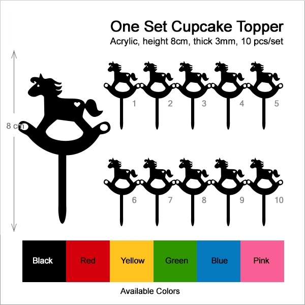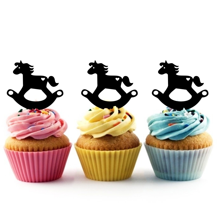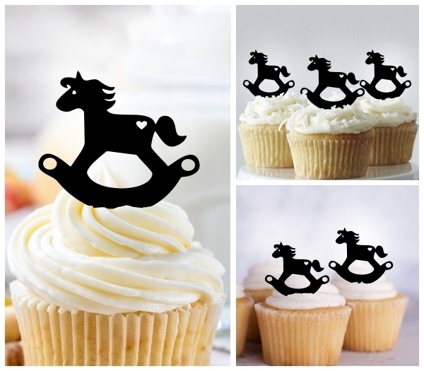 Rocking Horse Cupcake 10 Toppers Laser Cut Acrylic for Wedding Birthday Baby Shower Bachelorette Engagement Party Decor