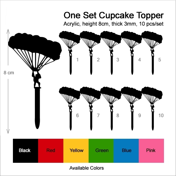 Skydiving Cupcake 10 Toppers Laser Cut Acrylic for Wedding Birthday Baby Shower Bachelorette Engagement Party Decor