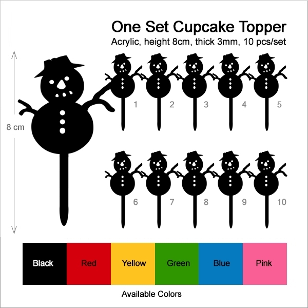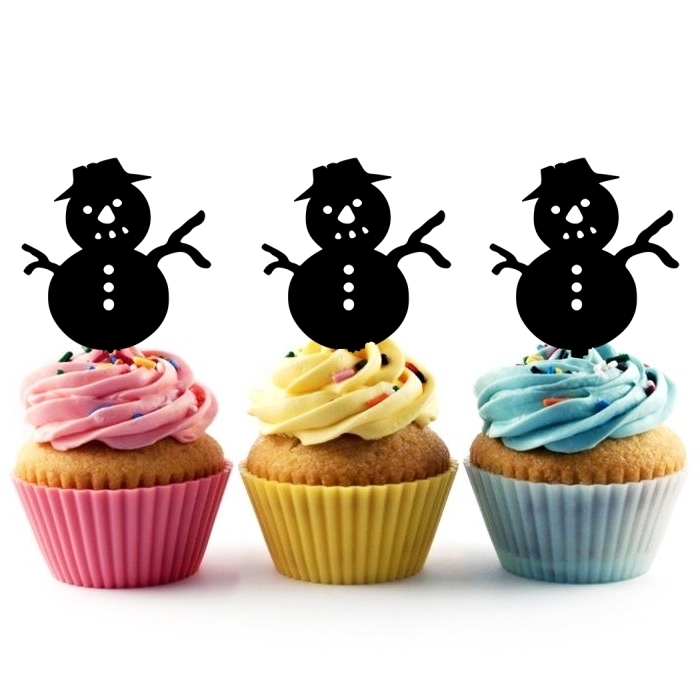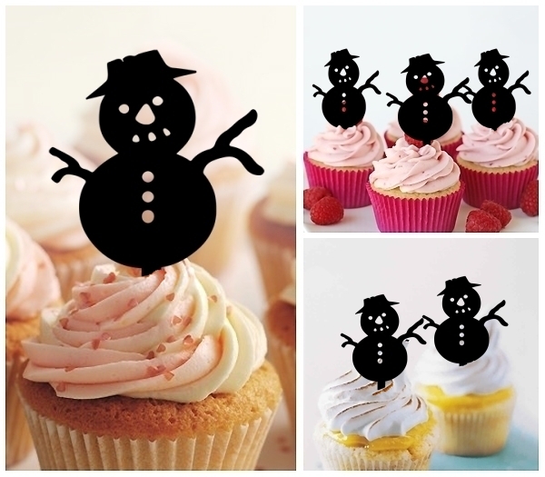 Christmas Snow Man Cupcake 10 Toppers Laser Cut Acrylic for Wedding Birthday Baby Shower Bachelorette Engagement Party Decor