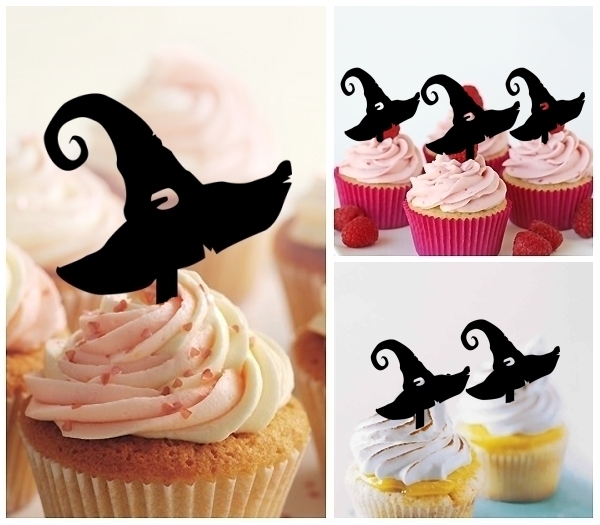 Witch Hat Halloween Cupcake 10 Toppers Laser Cut Acrylic for Wedding Birthday Baby Shower Bachelorette Engagement Party Decor