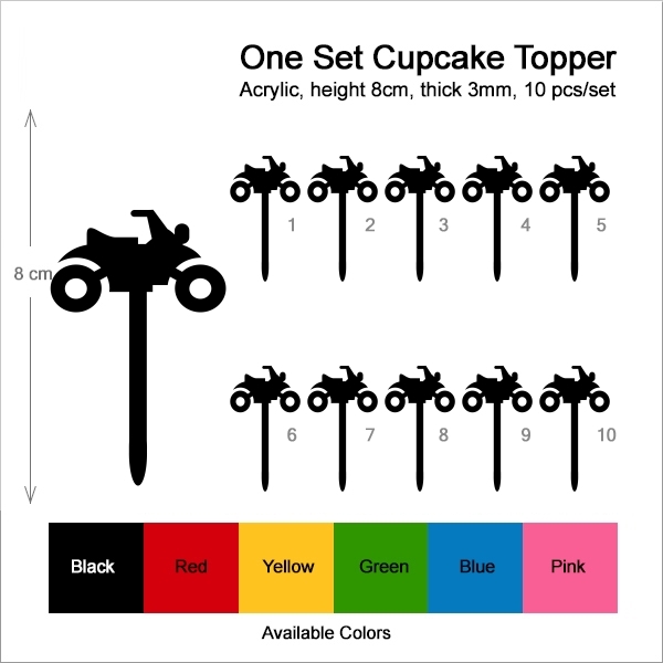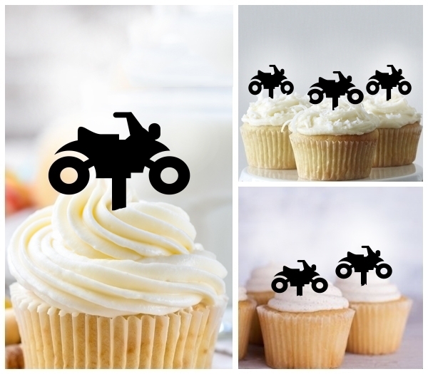 ATV Motorcycle Cupcake 10 Toppers Laser Cut Acrylic for Wedding Birthday Baby Shower Bachelorette Engagement Party Decor